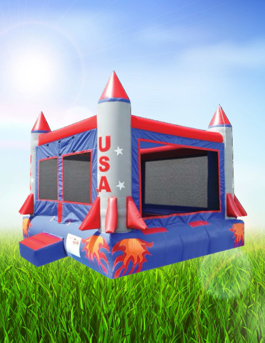 Looking to add a blast of fun to your party or event? Our Rocket Bounce House is the perfect choice! The vibrant red, white, and blue design will captivate both kids and adults, bringing a patriotic touch to your celebration.