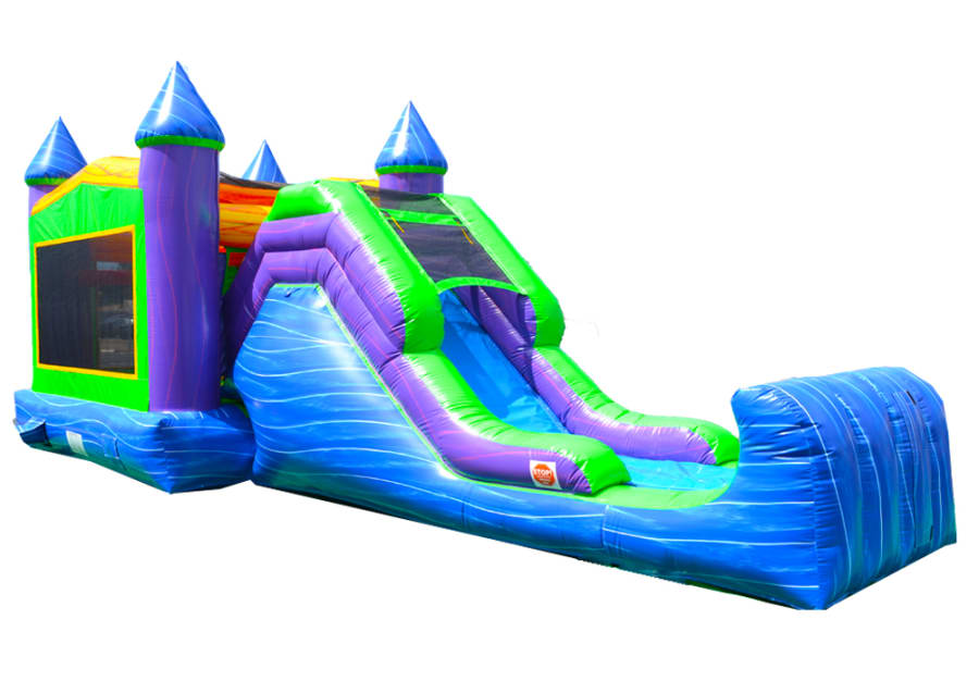 The Neon Marble Bounce House Wet/Dry Combo is ideal for birthday parties, school field days, church picnics, neighborhood block parties, and more. No matter the occasion, kids will love bouncing, sliding, and splashing in this colorful combo unit. Parents can relax knowing all the safety features are in place, and the fun never stops!